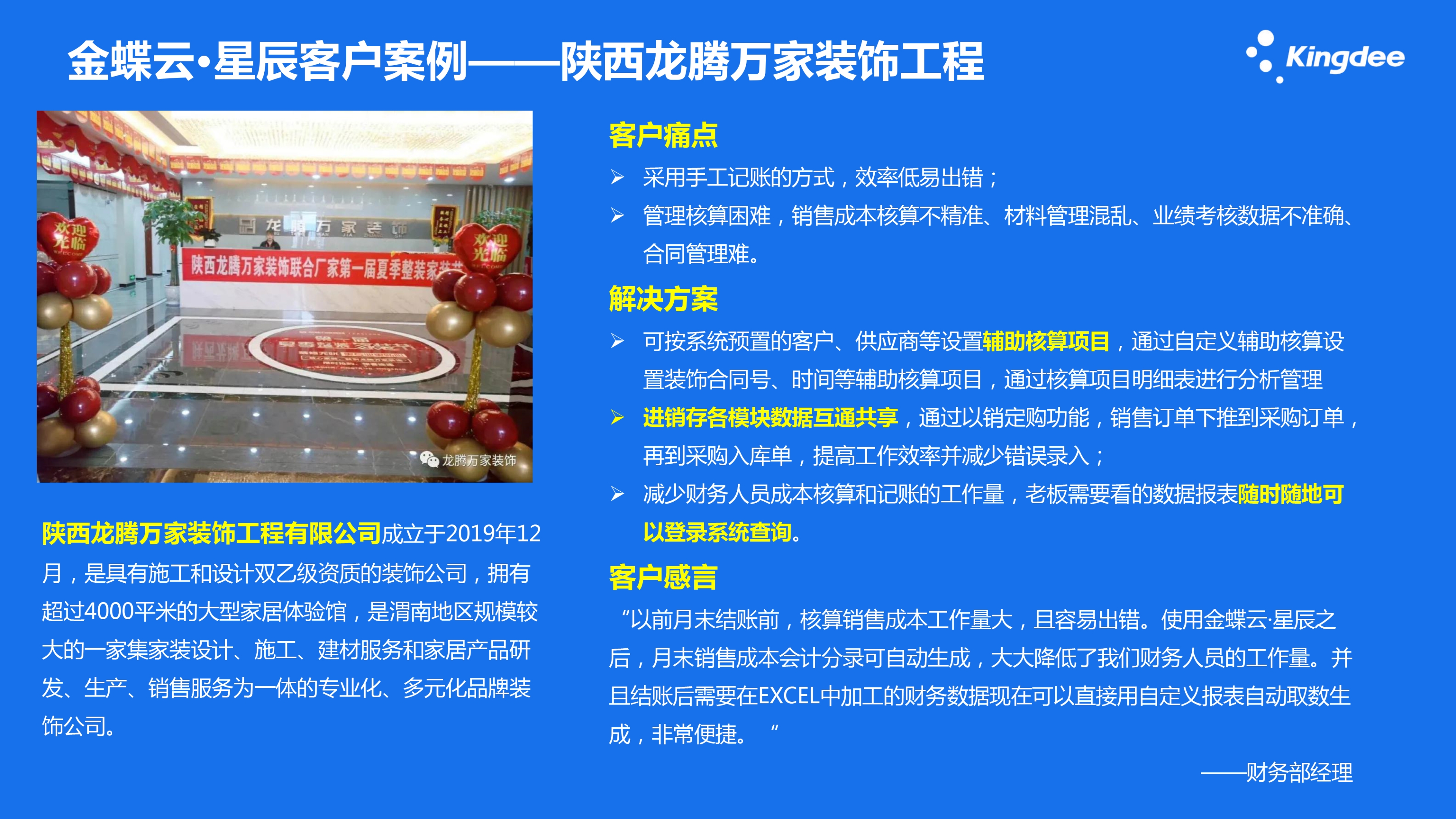 洛陽(yáng)金蝶軟件,金蝶云·星辰客戶案例——陜西龍騰萬(wàn)家裝飾工程有限公司