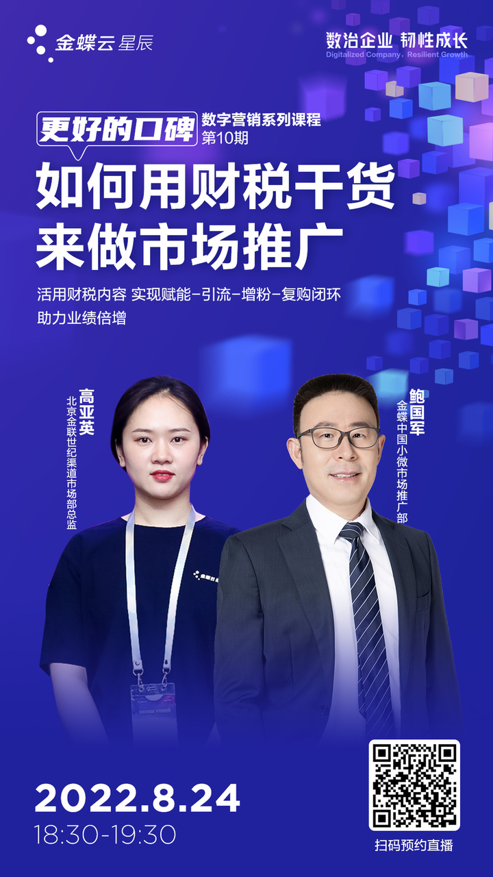洛陽(yáng)金蝶軟件分享金蝶財(cái)稅公開課,2022.8.24【數(shù)字營(yíng)銷系列課程】第10期來啦!