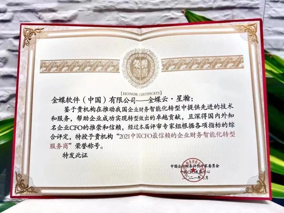 圖:金蝶云·星瀚獲獎(jiǎng)證書