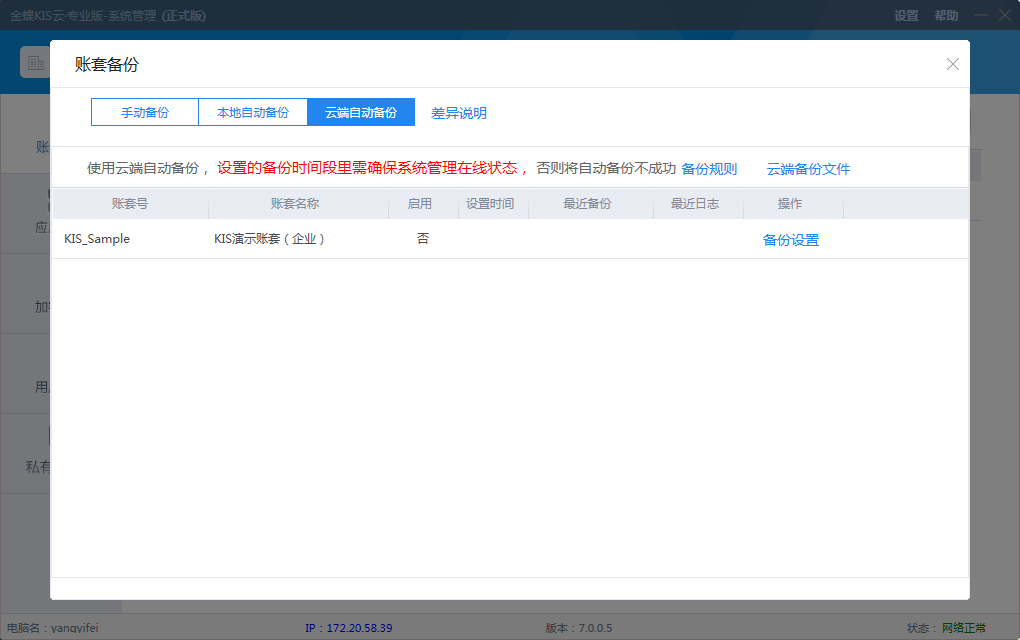 系統(tǒng)管理增加賬套自動云備份功能,保障賬套數(shù)據(jù)安全