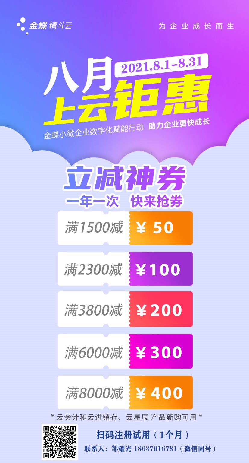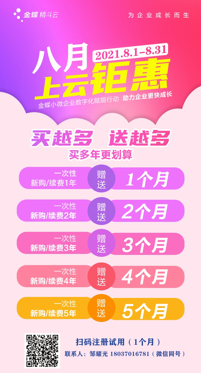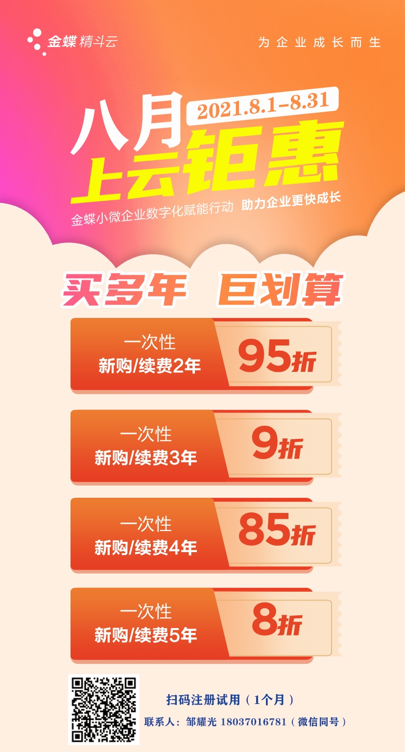 洛陽金蝶軟件,洛陽財(cái)務(wù)軟件,2021.8月金蝶精斗云促銷活動(dòng)介紹: