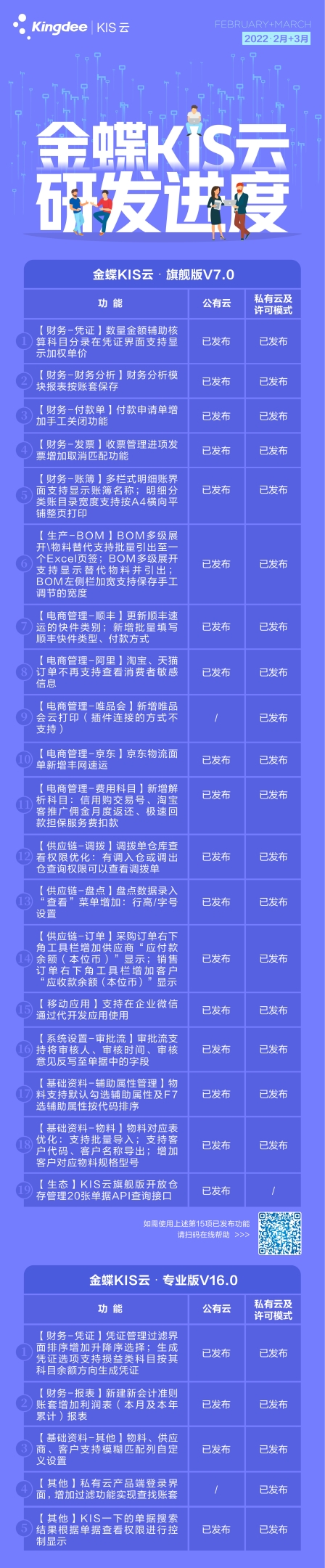 洛陽金蝶軟件—2022.2-3月金蝶KIS云產(chǎn)品研發(fā)更新進度