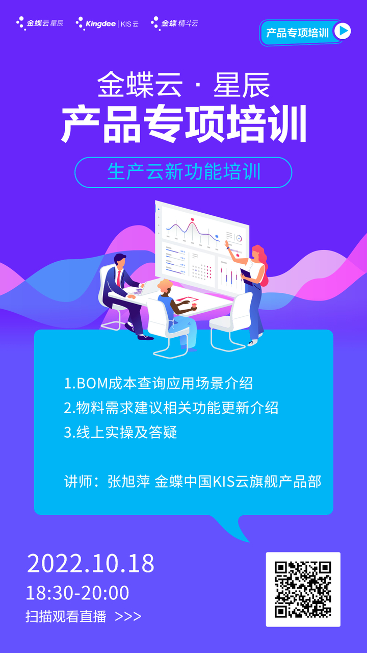本期課程:生產(chǎn)云新功能培訓(xùn)——BOM成本查詢、物料需求建議選任務(wù)單計算等新功能場景介紹及演示