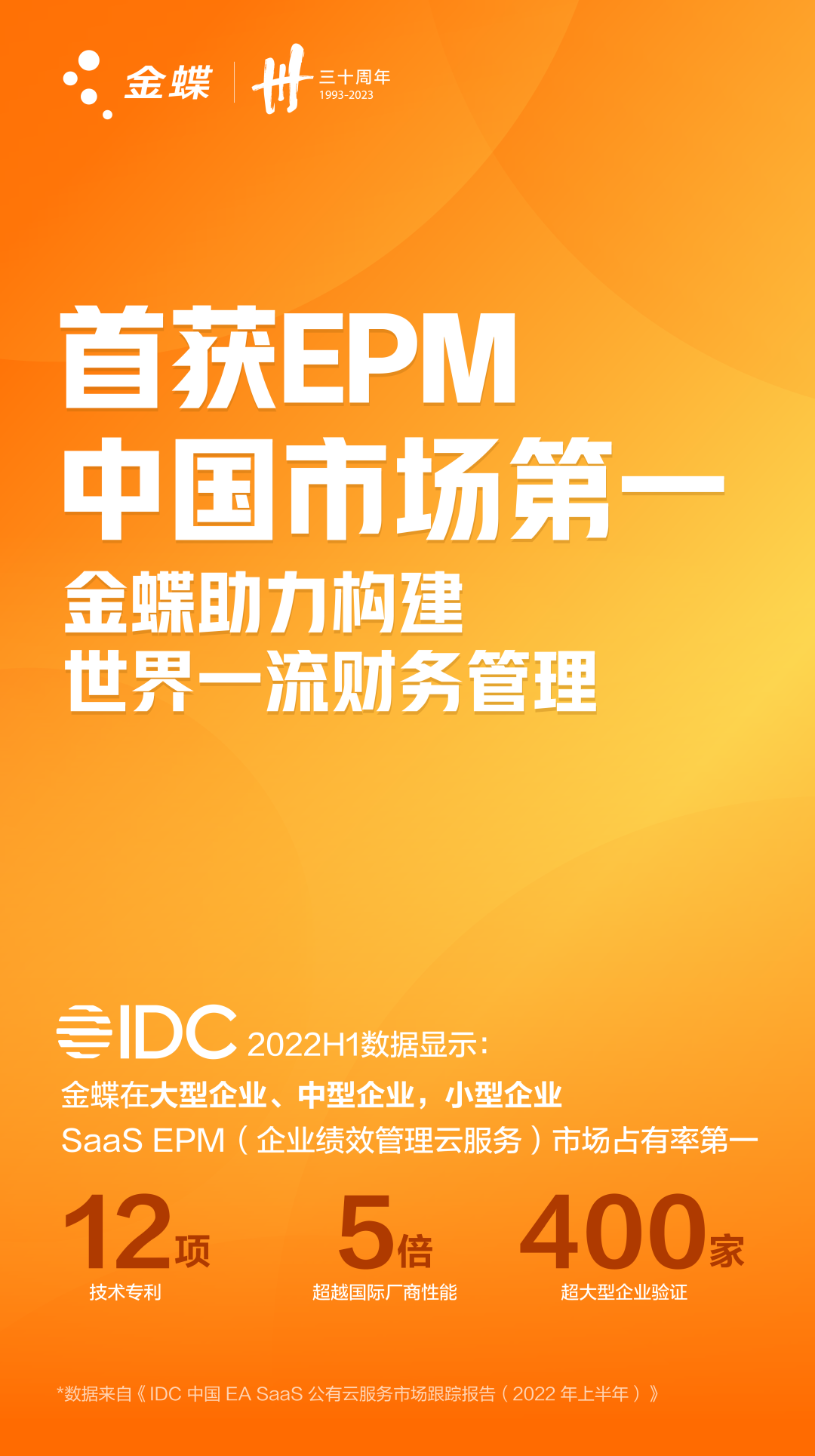 世界一流,中國第一!金蝶EPM奪冠IDC中國企業(yè)績效管理云市場!