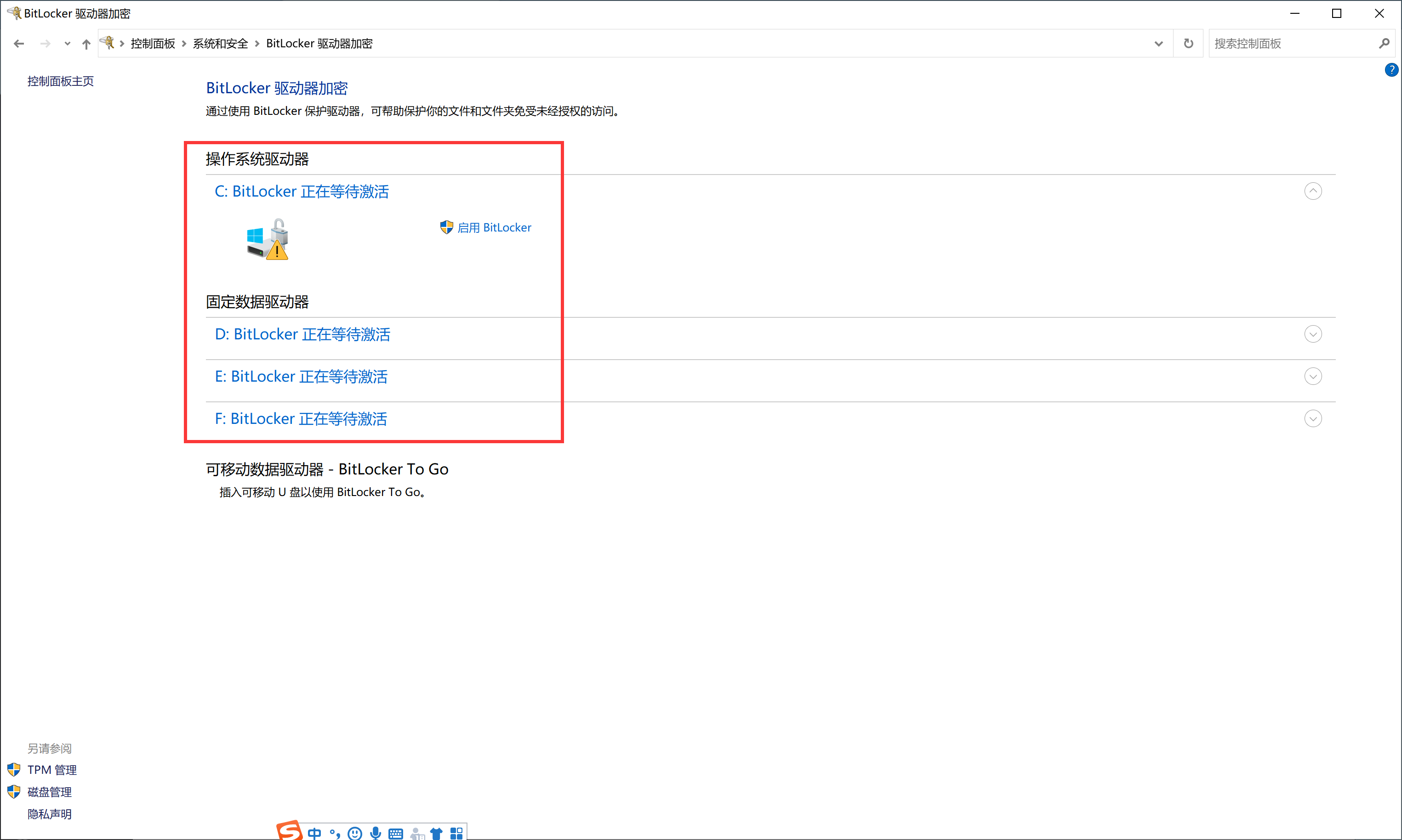 取消磁盤的Bitlocker加密,使磁盤不帶(Bitlocker 已加密)標(biāo)識: