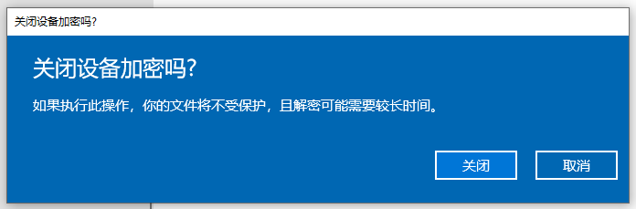 關(guān)閉 設(shè)備加密功能可能需要一點時間 (大概2-3小時左右),在此期間 請保持 適配器不要關(guān)機(jī),也請注意期間 電腦不要進(jìn)入休眠或睡眠;