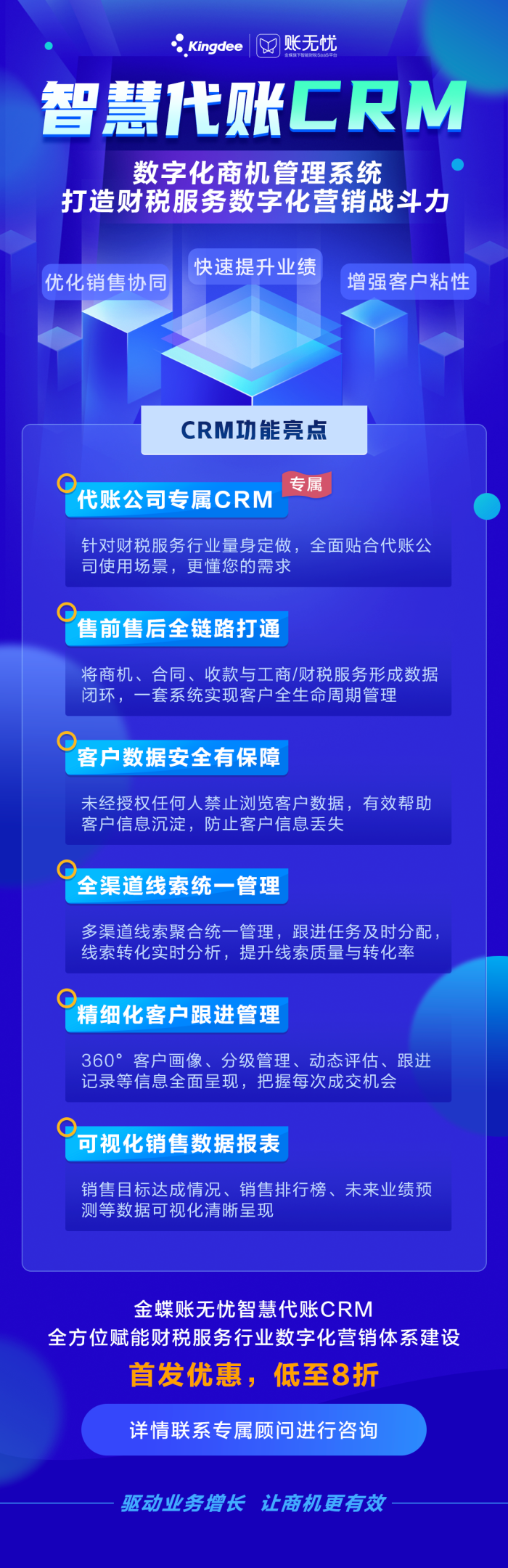 洛陽金蝶軟件-重磅推出,智慧代賬CRM代賬公司數(shù)字化營銷利器來了!