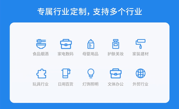 行業(yè)覆蓋:服裝鞋帽、數(shù)碼電器、母嬰用品、食品飲料、文體辦公、工業(yè)材料、家居裝飾、醫(yī)藥器械、財(cái)稅服務(wù)等領(lǐng)域