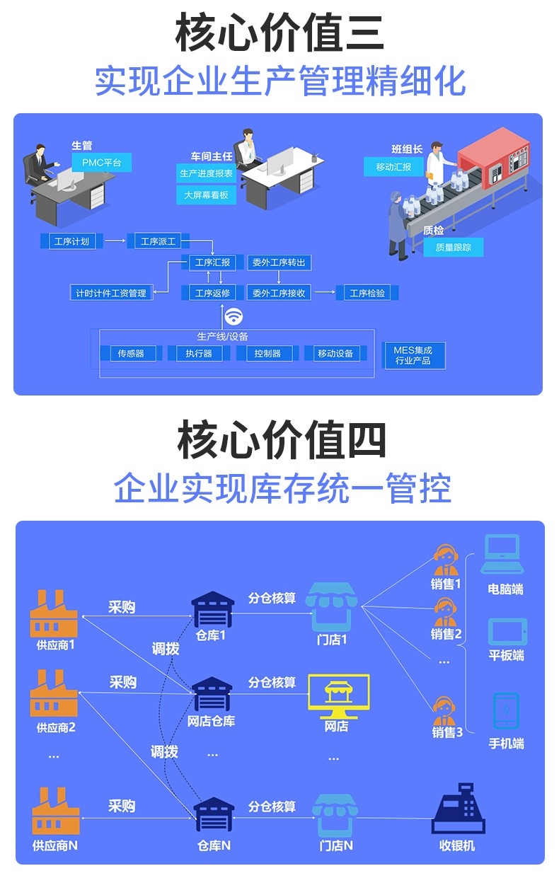 金蝶KIS云·旗艦版,秉承“讓生意更成功”的產(chǎn)品理念,致力為中小企業(yè)拓展?fàn)I銷通路,提升商家口碑,提高生產(chǎn)和運(yùn)營效率,為小型工貿(mào)及商貿(mào)企業(yè)提供涵蓋業(yè)務(wù)協(xié)同、全網(wǎng)會(huì)員、全網(wǎng)促銷、電子商務(wù)、零售門店、微商城,WMS倉儲(chǔ)及配送、供應(yīng)鏈生產(chǎn)制造、智能財(cái)務(wù)、人事管理領(lǐng)域的信息化解決方案,依托先進(jìn)的移動(dòng)互聯(lián)云服務(wù),幫助企業(yè)快速構(gòu)建面向多渠道營銷、多地點(diǎn)辦公、多企業(yè)協(xié)同以及多終端應(yīng)用的IT服務(wù)平臺(tái),支持企業(yè)高效開展全渠道經(jīng)營,加強(qiáng)生產(chǎn)過程管理,積極融合產(chǎn)業(yè)互聯(lián)網(wǎng),實(shí)現(xiàn)跨越式發(fā)展。