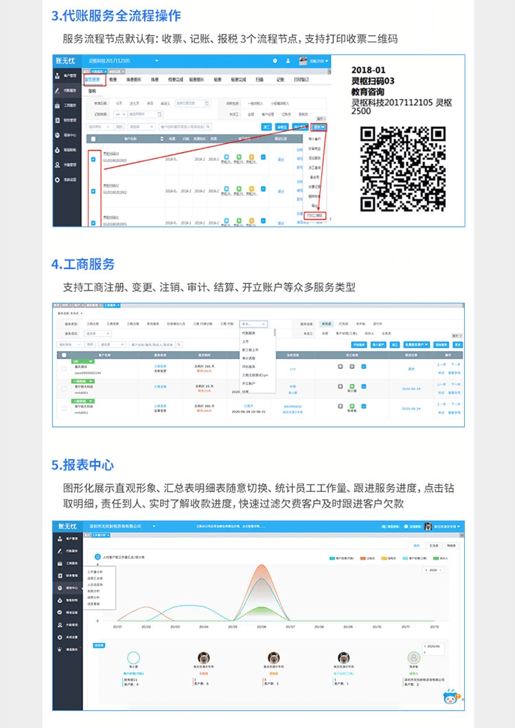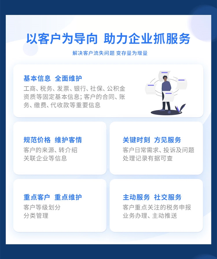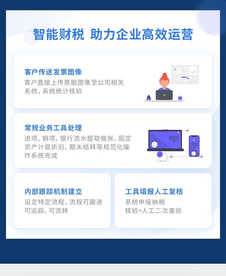 7.自定義工作流程: 工商、代賬服務(wù)流程管理分工明確、時(shí)間進(jìn)度跟蹤;